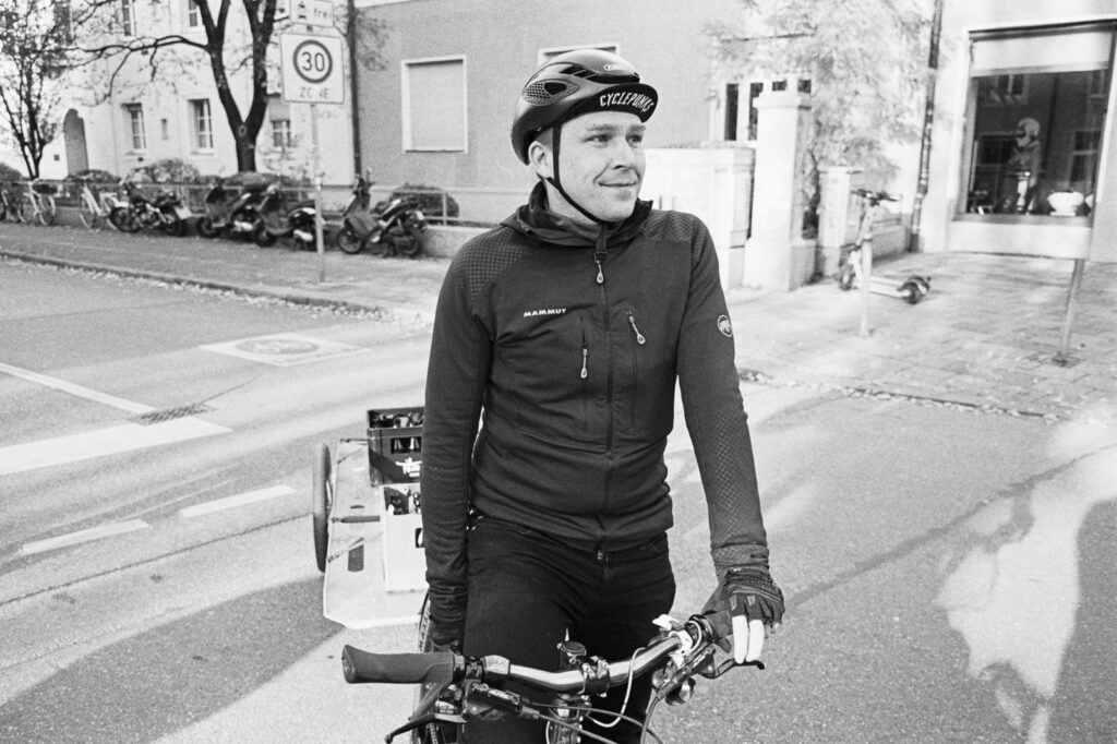 „Ich komme vom Dorf, da war das Auto heilig. Auch in München bin ich anfangs jeden Meter auf vier Rädern gefahren. Dann aber wurde mir das ganze Theater um die Parkplatzsuche und die ständigen Reparaturen zu blöd. München ist aber ein hartes Pflaster für die Mobilitätswende. Auf zwei Menschen kommt hier nämlich ein Auto – das ist viel zu viel. Ich lebe deshalb autofrei, repariere meine Räder selbst und engagiere mich bei der Nichtregierungsorganisation FreiRAUM-Viertel. Hier verwandeln wir graue Parkplätze mithilfe von mobiler Begrünung und Stadtmöbeln in kleine Aufenthalts-Oasen und zeigen, dass Stadtentwicklung auch von unten funktioniert. Anfangs wollte ich eigentlich nur ein paar Autofahrer:innen ärgern – jetzt engagiere ich mich ernsthaft und Vollzeit. Wenn’s sein muss, male ich mir meinen Radweg eben selbst. Ich sehe mich aber nicht nur als Kämpfer, sondern auch als Versöhner. In meiner Funktion als Bicycle Mayor versuche ich, andere NGOs, Verwaltung und Anwohner:innen an einen Tisch zu bringen und sie für den Radverkehr zu begeistern. Das 58-Euro-Ticket ist nämlich leider für viele einkommensschwache Menschen keine Option. Außerdem ist das Fahrrad für mich das demokratischste aller Verkehrsmittel, weil es Lösungen für viele Probleme bietet: Du willst dich mehr bewegen, günstiger, schneller und mit weniger Stress unterwegs sein? Nimm das Rad! Und jede Person, die aufs Fahrrad umsteigt, entlastet die Straße – auch für die, die wirklich aufs Auto angewiesen sind. Ich weiß: Der Umbau hin zu einem fahrradfreundlichen München bleibt ein Kampf. Aber ich bin voller Hoffnung. Und ich finde: Wir sollten auch mal loben, wenn etwas gut funktioniert. Die Münchner Zeppelinstraße zum Beispiel zeigt, wie ein Umbau zugunsten von Fuß- und Radverkehr aussehen kann. Nach dem Radentscheid 2019, den ich mitorganisiert habe, soll jetzt auch der Altstadtring umgebaut werden. Wer weiß: Vielleicht wird mal ein Radschnellweg nach mir benannt. Vielleicht auch nicht. Wichtig ist nur, dass wir dranbleiben, damit künftige Generationen davon profitieren.“