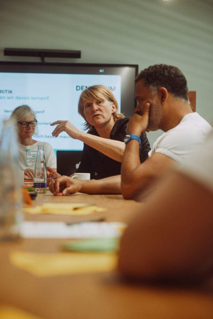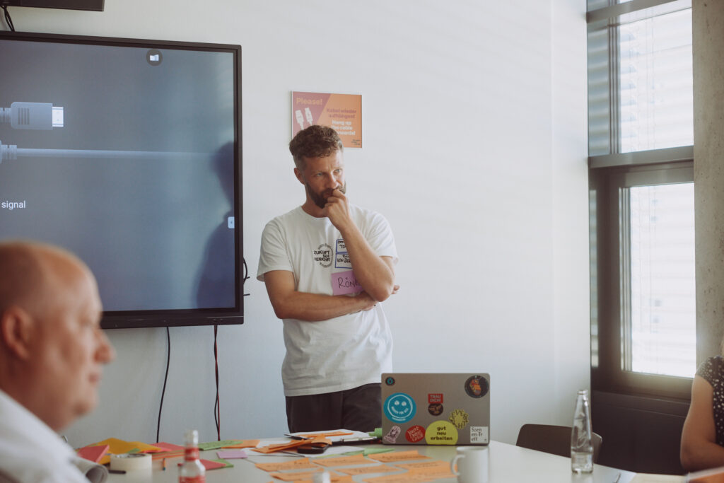 „Wir haben kein Erkenntnisproblem, wir haben ein Umsetzungsproblem“, sagt einer der Teilnehmenden gleich zu Beginn, als wäre das alles hier von vornherein zum Scheitern verurteilt. Die Moderatoren Dirk von Gehlen, Natie Wiedhopf und Rönke von der Heide müssen direkt einmal ausbremsen und den mentalen Raum ganz weit öffnen, bevor ihn andere gleich schließen. Die Anweisung, die die Moderatoren den Anwesenden für die bevorstehende Arbeit geben: erst mal zuhören, wenn andere reden. Keine Gegenrede, keine Rechtfertigung. Einfach nur Stille. Das Ziel: Die Beteiligten sollen raus aus ihren Fachsilos kommen, weg von ihren Branchenlogiken. Einige nicken, als sei das selbstverständlich. Andere verschränken die Arme vor der Brust, als wären sie seit Jahren nicht in dieser Ungeschütztheit gewesen. Es wirkt wie der Beginn einer Probe, von der niemand weiß, ob am Ende überhaupt ein Stück herauskommt.